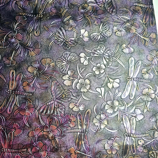Kunstleder Embossed Shimmer Flowers, Rollen 30 x 139 cm