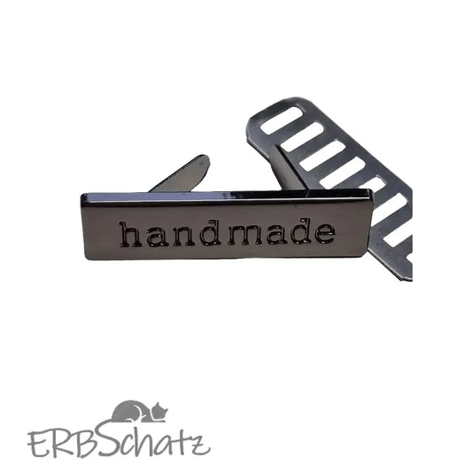 Metall Label "Handmade" zweifarbig - Metallic/Black
