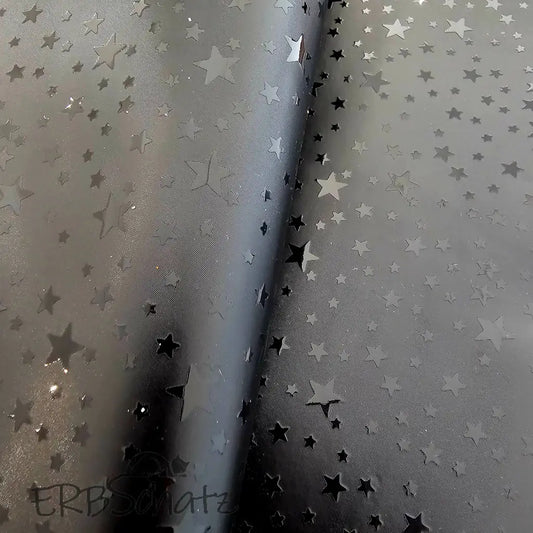 Kunstleder Satin Stars Black | Rollen 30 x 135 cm