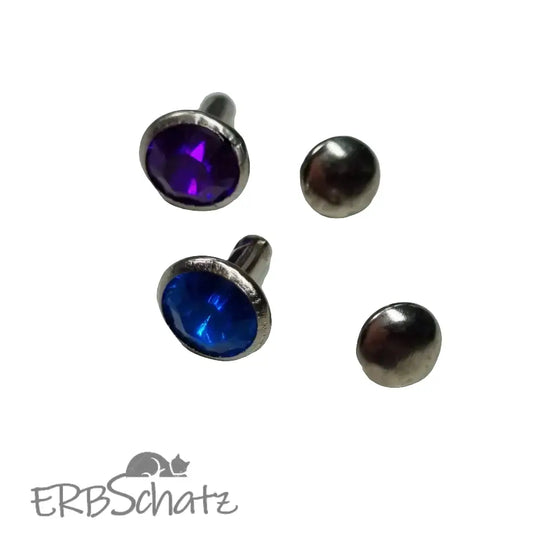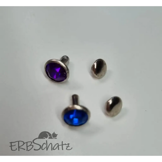 Nieten Silber mit Strassstein Blau/Lila 8x4 mm