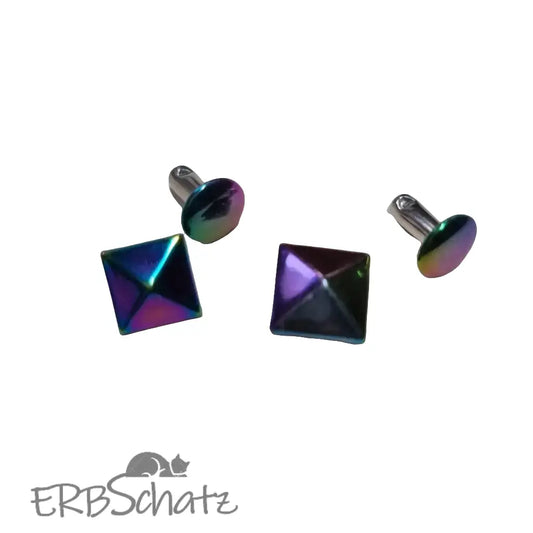 Viereck Niete Pyramide Rainbow 9/10 mm
