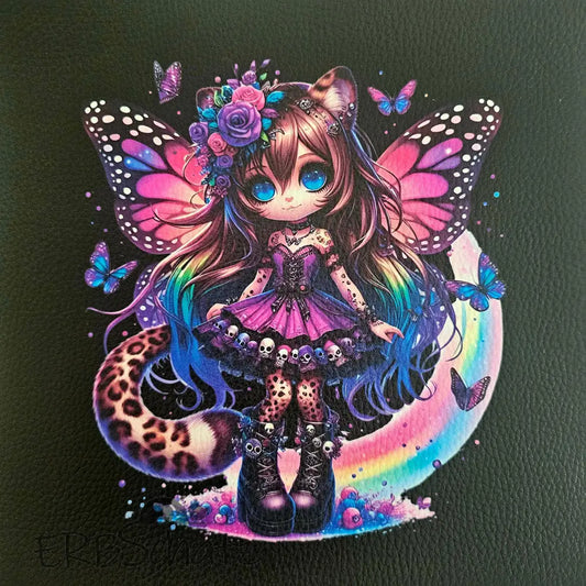 Kunstleder Panele Leo Butterfly Goth Girl Collection, 30x 30cm