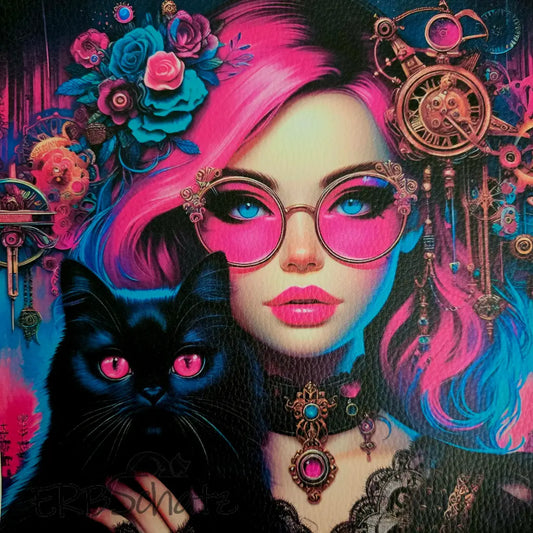 Kunstleder Panele Vibrant Woman & Cats, 25x25 cm