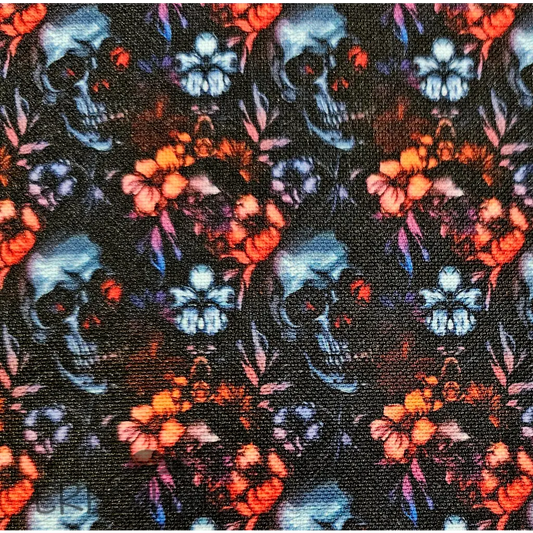AusverkauftKunstleder Dark Skulls & Flowers 50 x 140 cm