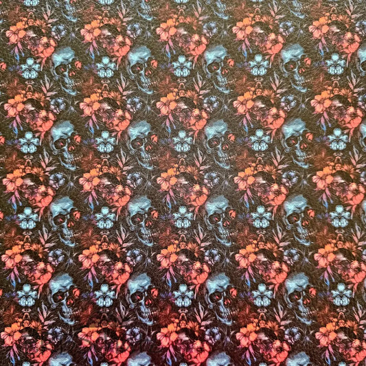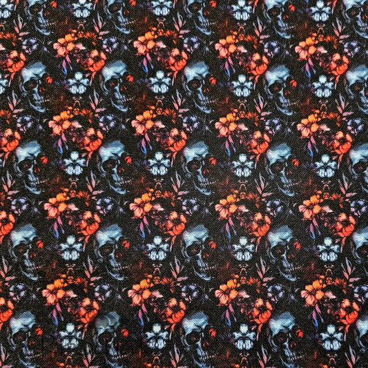 Kunstleder Dark Skulls & Flowers 50 x 140 cm