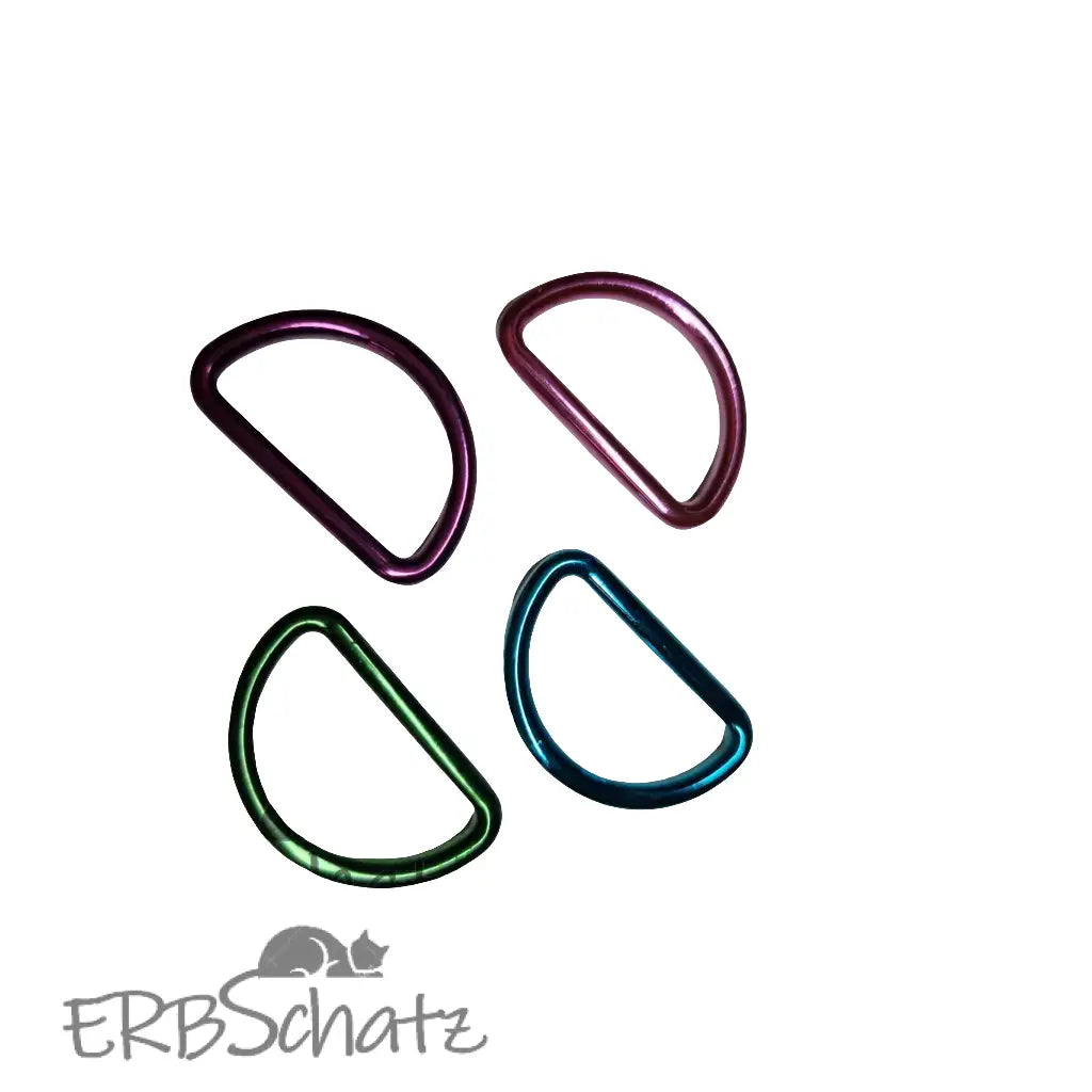 Nice stable D-rings for use with 25mm webbing. These D-rings are outstanding in color in beautiful metallic colors pink, purple, blue or green - give your bag the perfect colorful touch and combine it with the matching rivets, zippers and endless zips here from the shop.