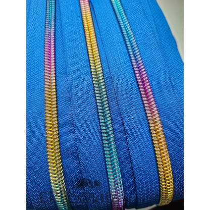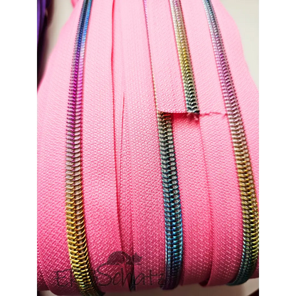 Endless zips with rainbow gold-colored nylon track for #5 zip pullers in your choice of colors.