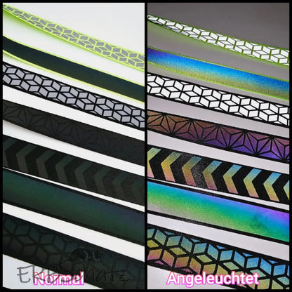 The straps are nice and stable, as soon as light shines on them, they reflect in all rainbow colors or white, depending on the model.