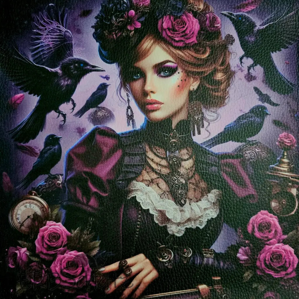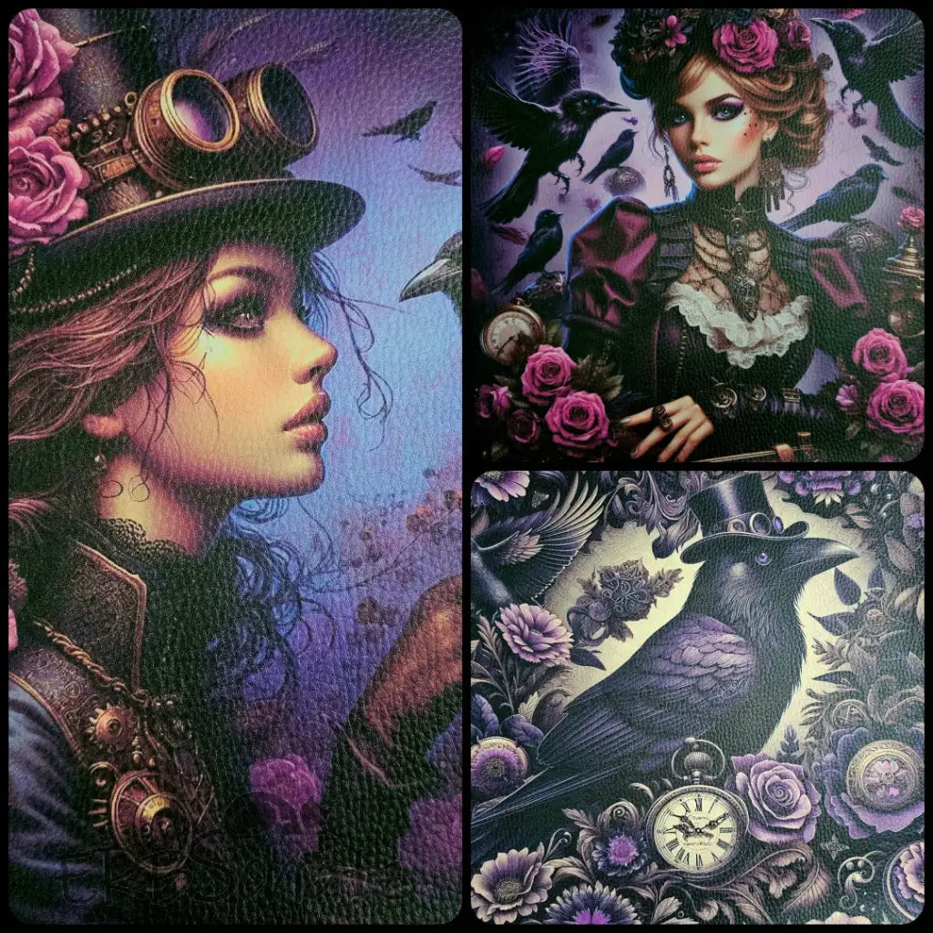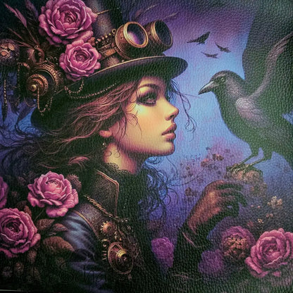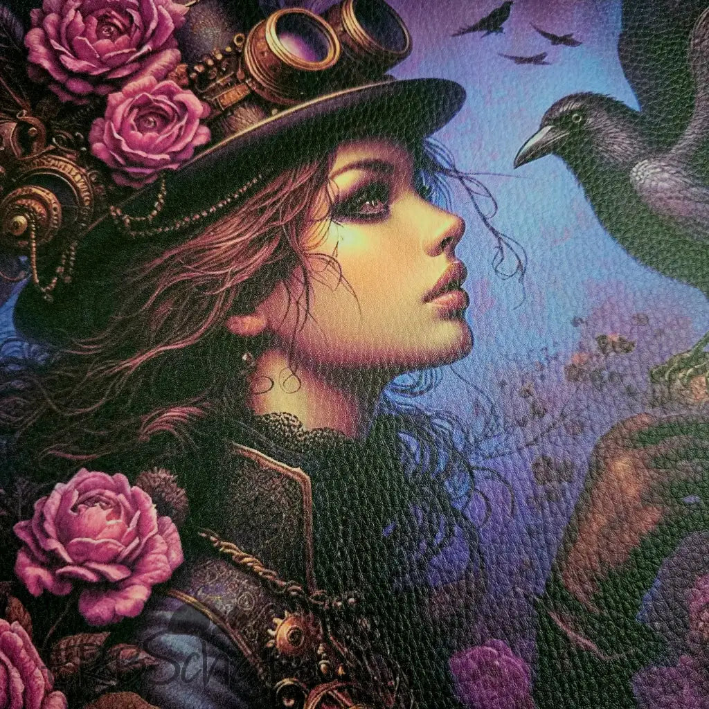 Kunstleder Panele Steampunk Raven Girl Collection, 25 x 25 cm