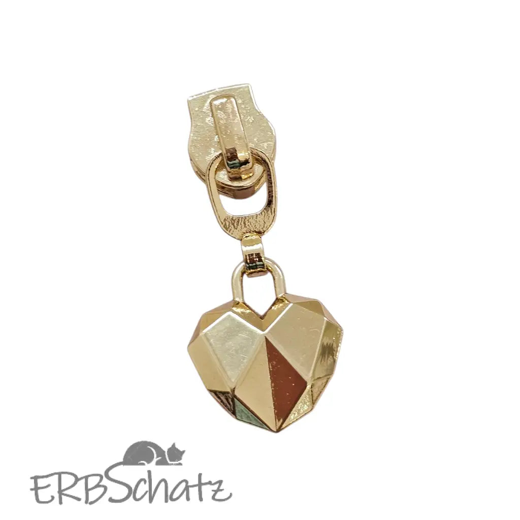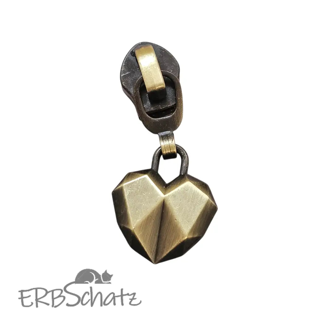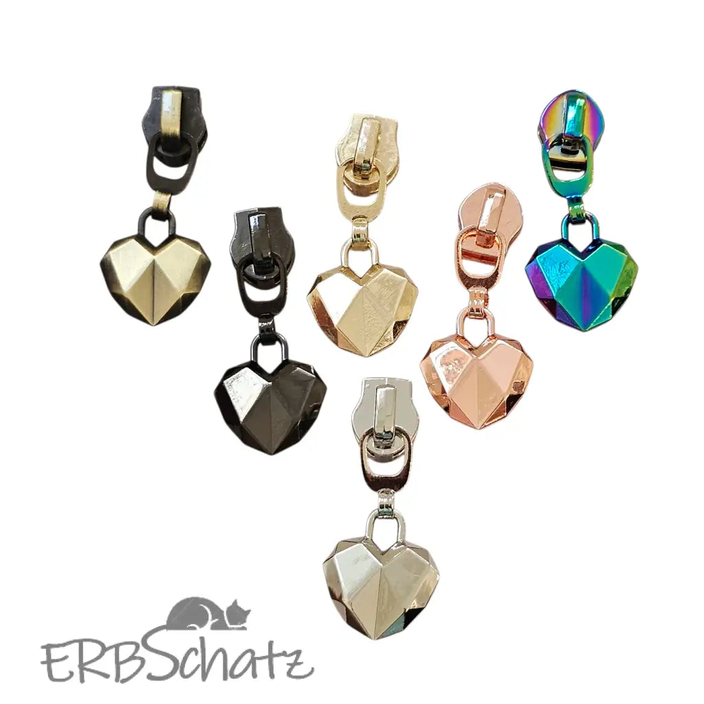 Tolle Zipper mit kleinem Herzanhänger in geschliffenem Diamant Stil in Größe No.5 für Nylon-Reißverschlüsse.