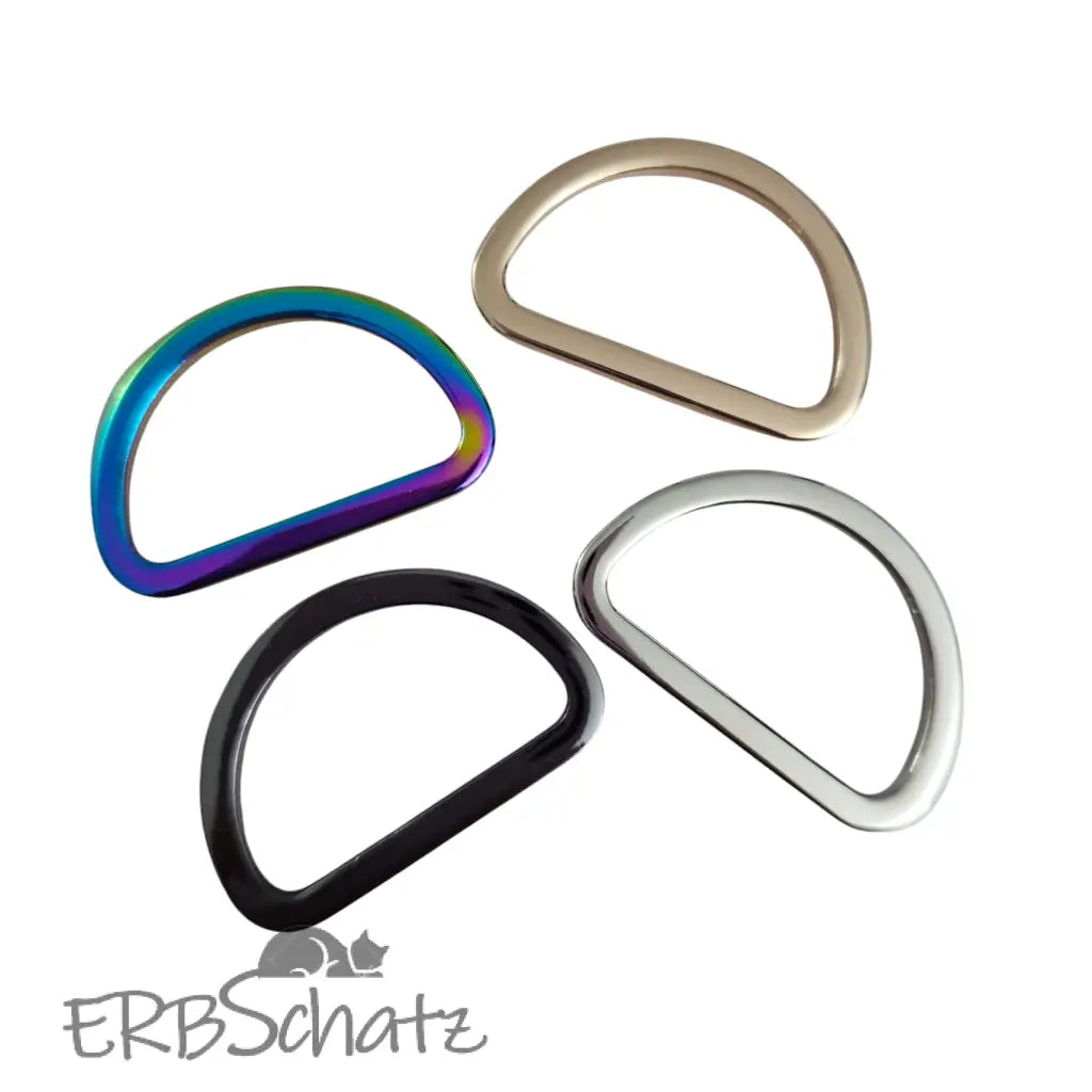 Schöne D-Ringe in moderner etwas eckigere Kantenform zur Anwendung bei 38mm Gurtbändern.