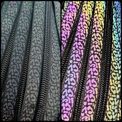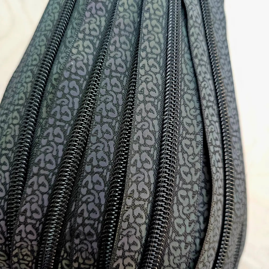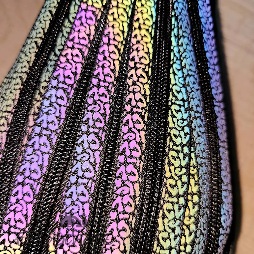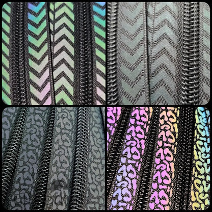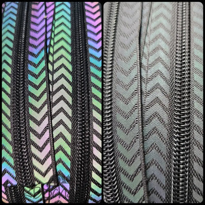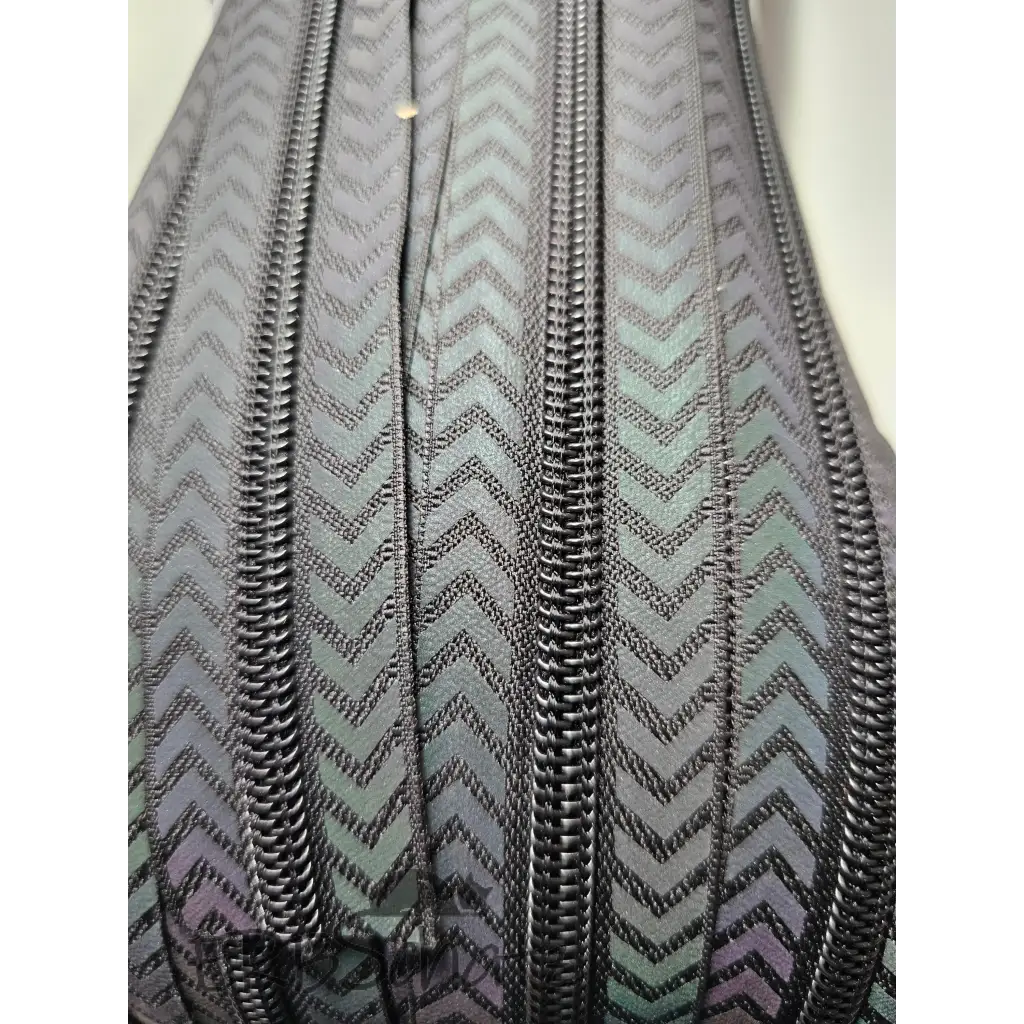 Besonderer Endlosreißverschluss der in schwarzem Pfeildesign daherkommt....angeleuchtet rflektiert das Pfeilmuster regenbogenfarben. RV für für #5 Zipper.