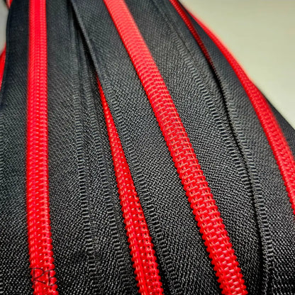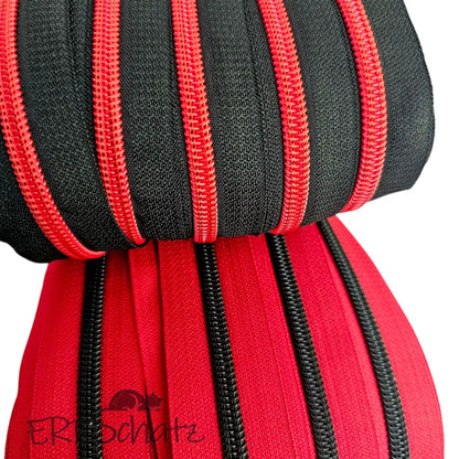 Endlosreißverschluß in Schwarz mit matt roter Raupe oder umgekehrt - ein echter Hingucker für #5 Zipper.