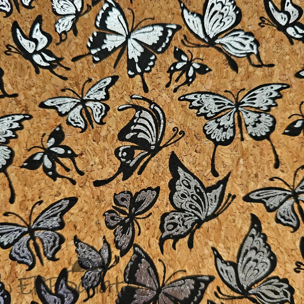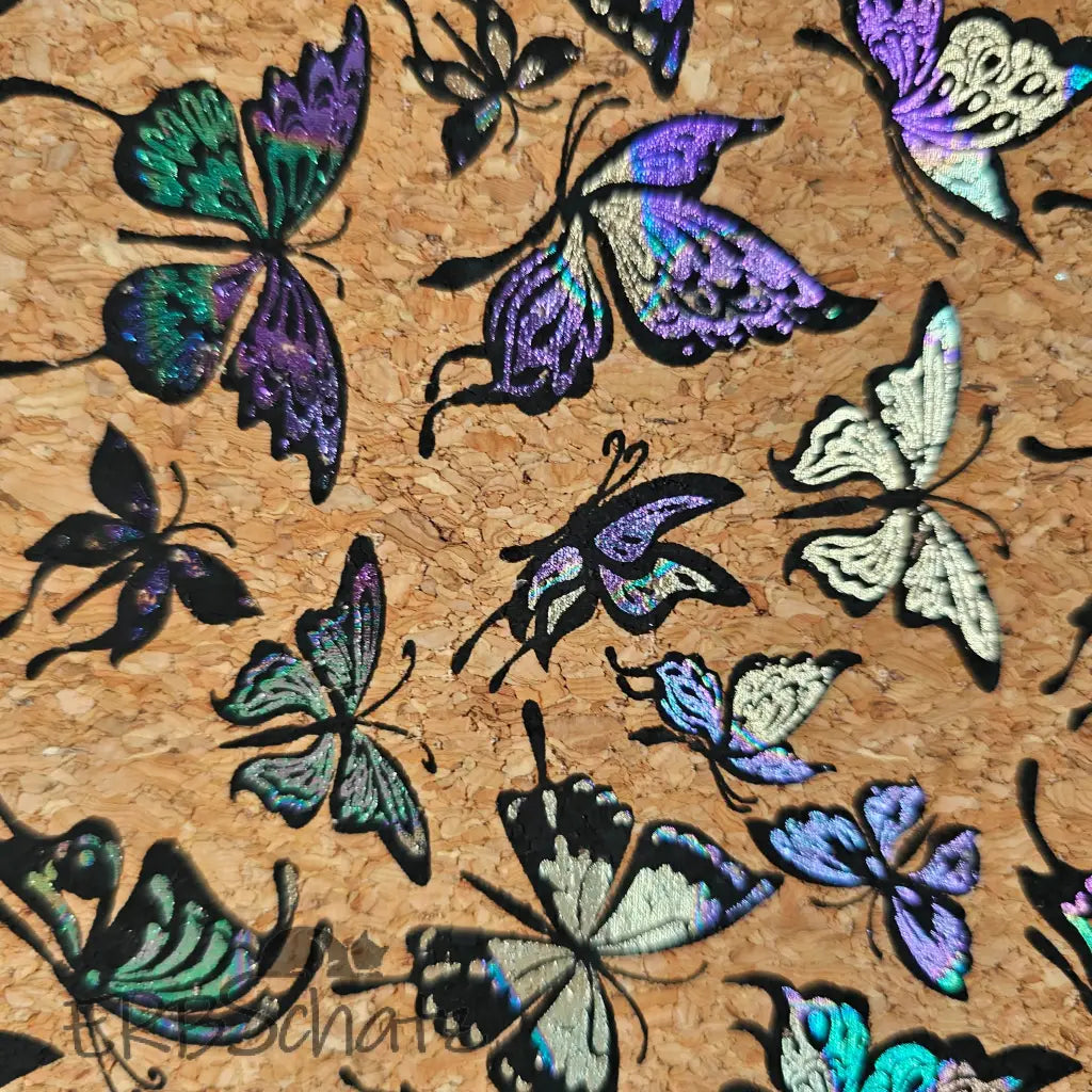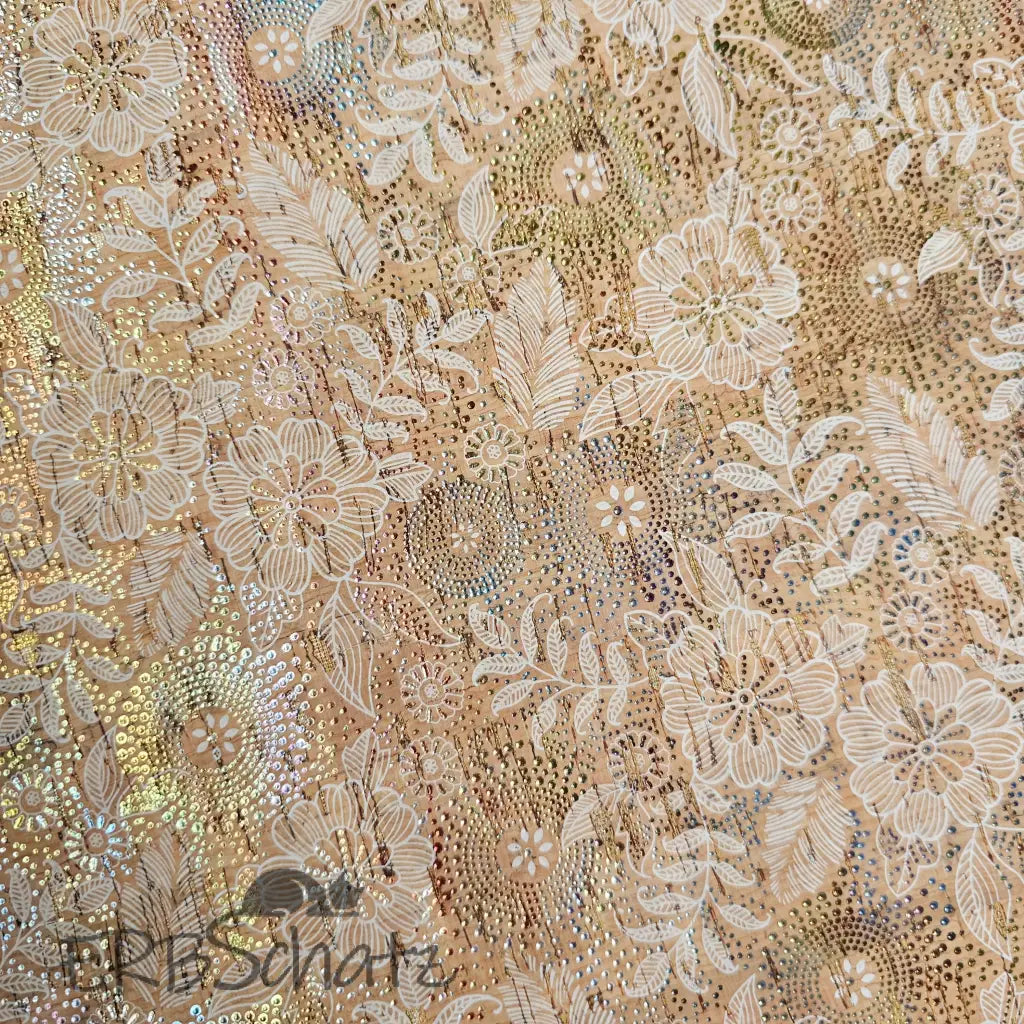 Schöner dünner Korkstoff mit wundervolle Designs, ob mit schillernden Schmetterlingen oder Kunstvollem Blumendesign, in jedem Fall ein echter Hingucker! Textilrückseite, sehr geschmeidig und toll zu vernähen - sollte auf jeden Fall verstärkt werden!