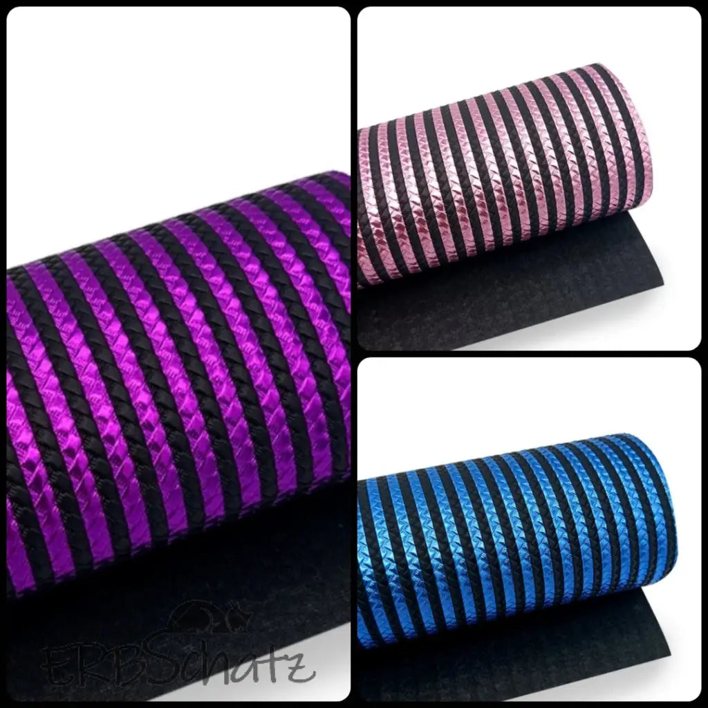 Kunstleder Braided Metallic Stripes, Rollen 30 x 135 cm