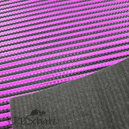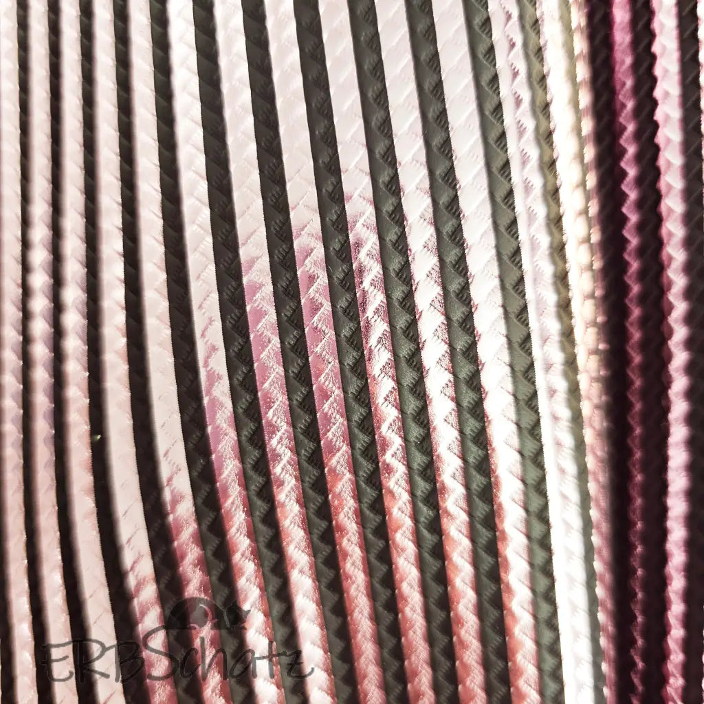 Kunstleder in geflochtener 3 D Zopf Optik - Schwarz mit vibrierenden metallic Farben gestreift. Ein super edler Look, der jede Tasche noch mehr zum Hingucker werden lässt.