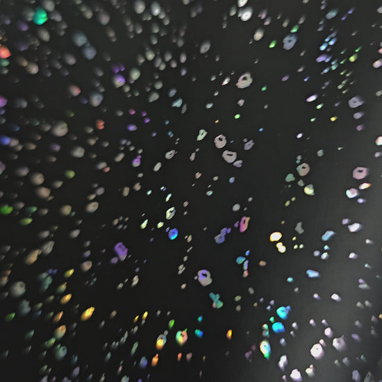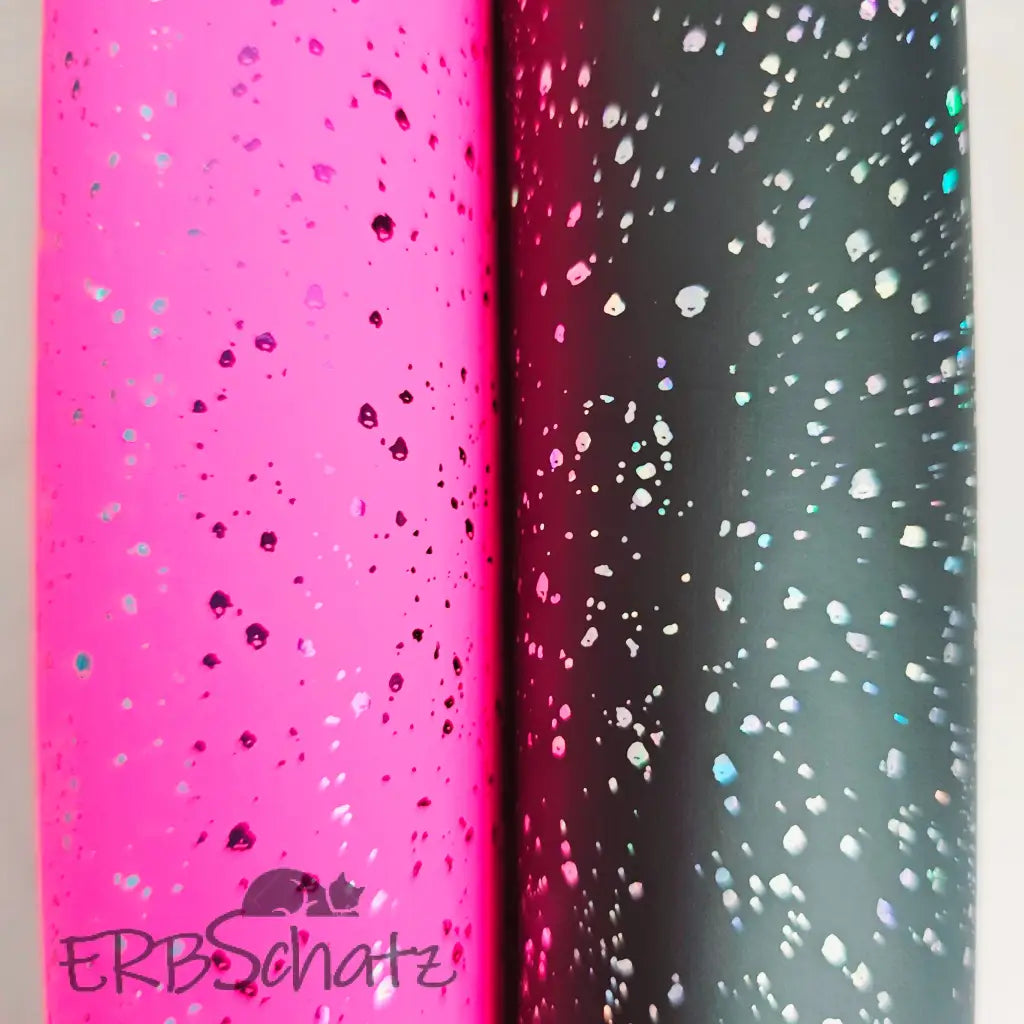 Kunstleder Rollen mit traumhaft schönem Holo Konfetti auf mattem Hintergrund. Das ausgefallene Design ist ideal um es als Akzent/Highlight auf deinem Nähprojekt zu verwenden.