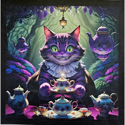 Kunstleder Panel GrinCat TeaParty, 30 x 30cm