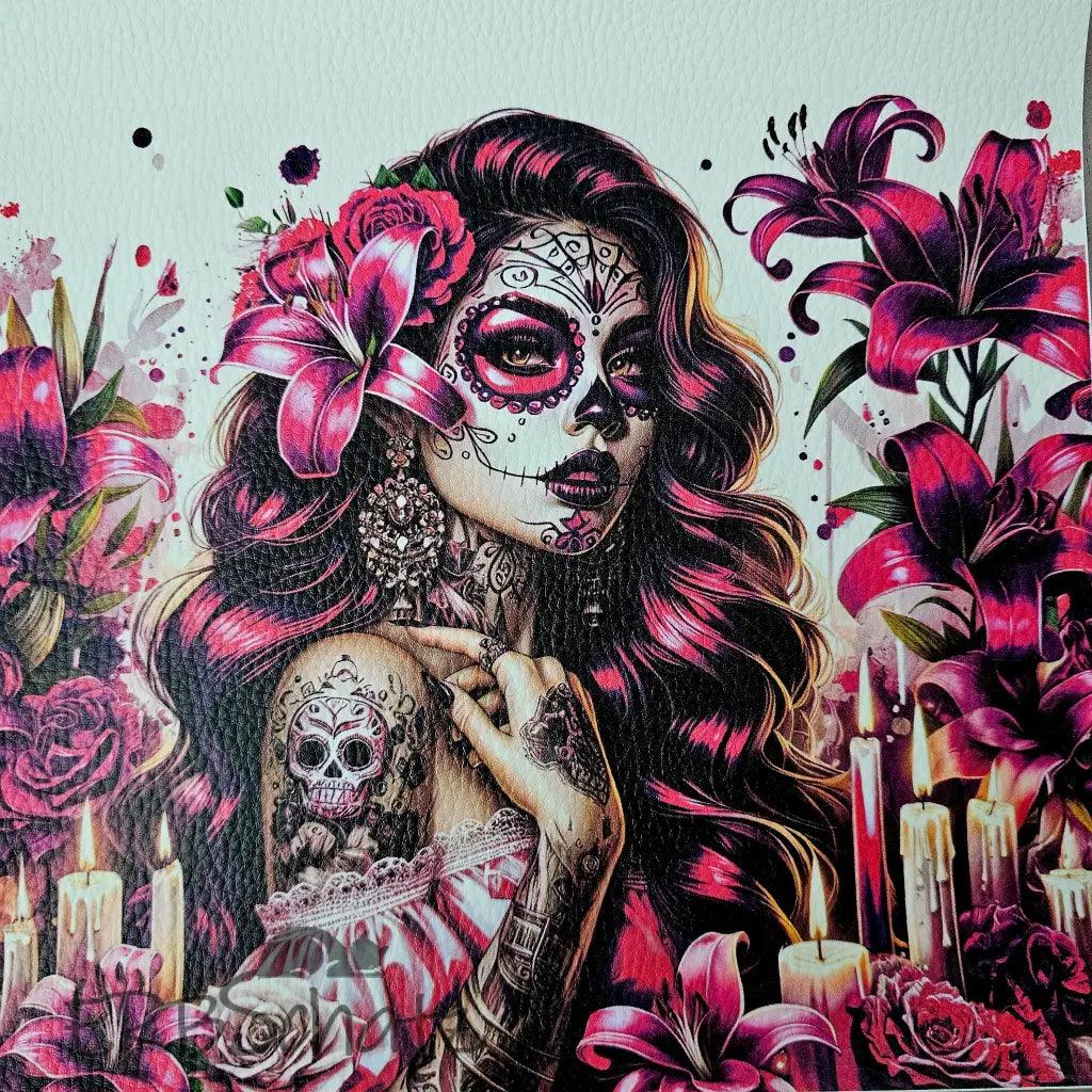 Kunstleder Panel TattooFlower Girl Coll, 25x 25cm