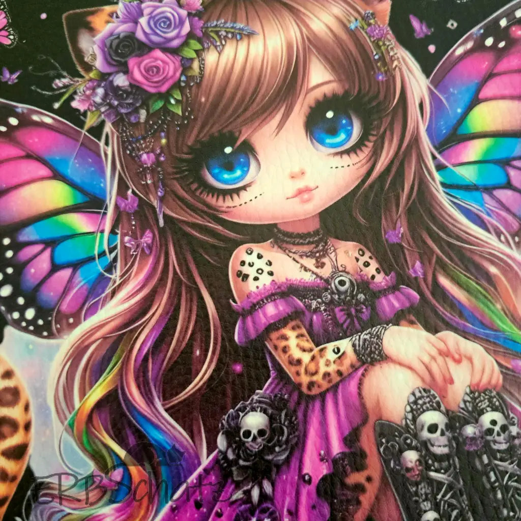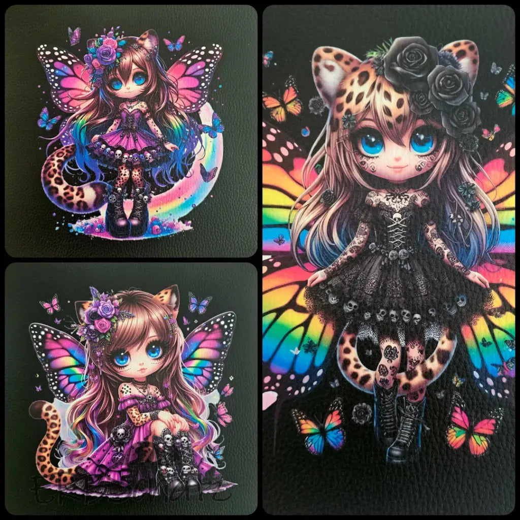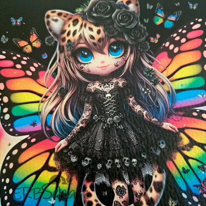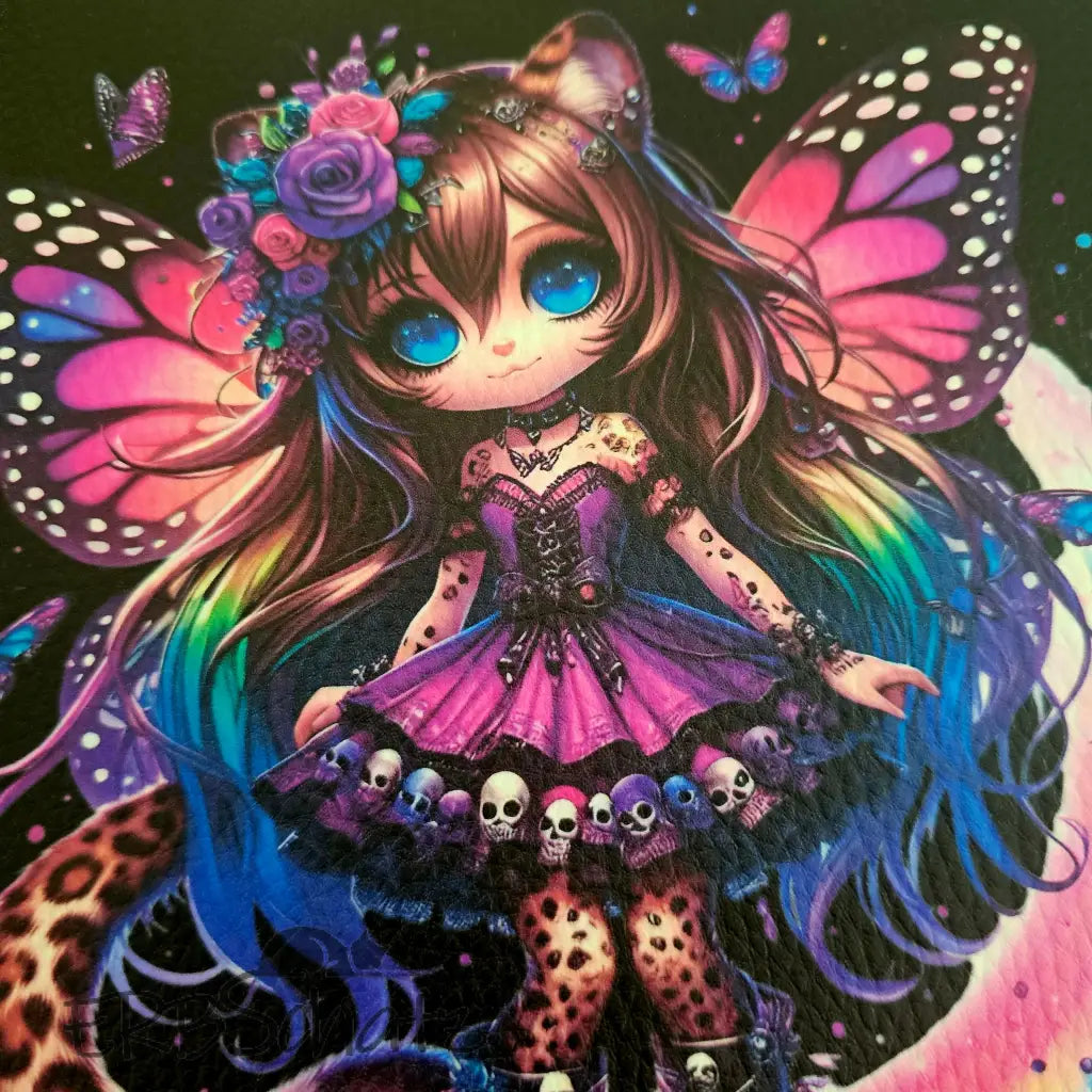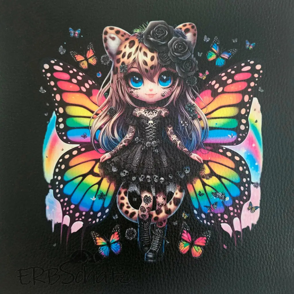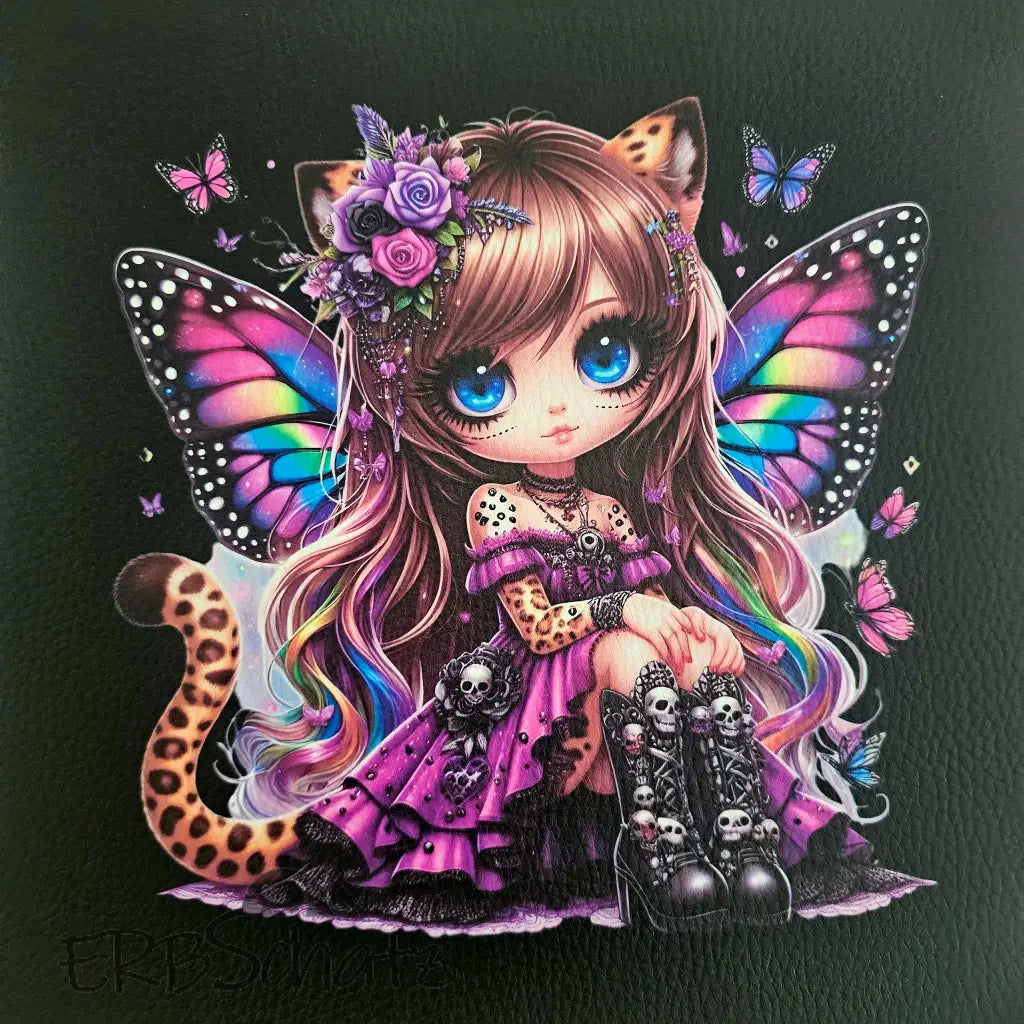 Kunstleder Panele Leo Butterfly Goth Girl Collection, 30x 30cm
