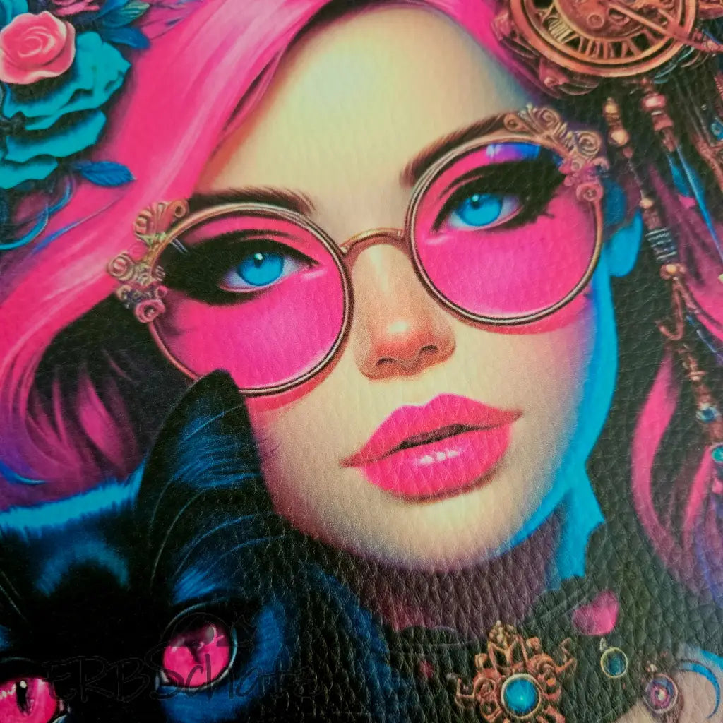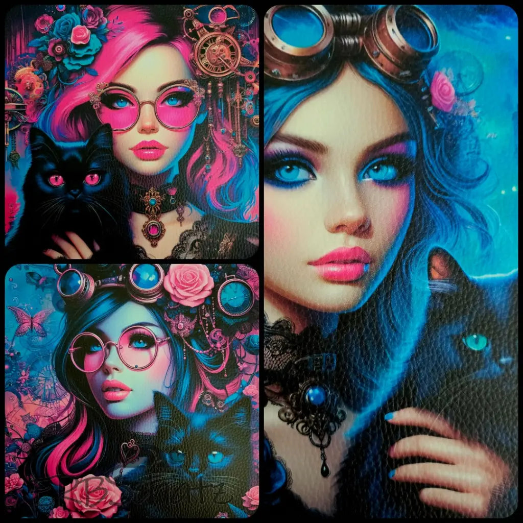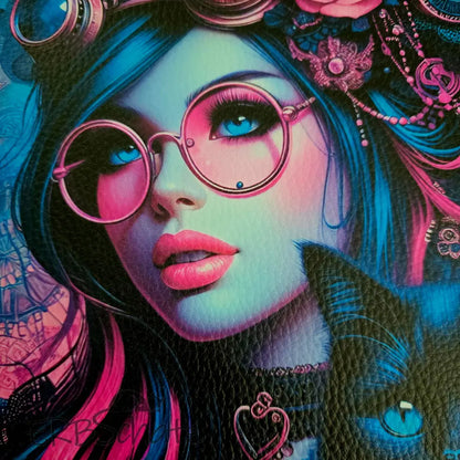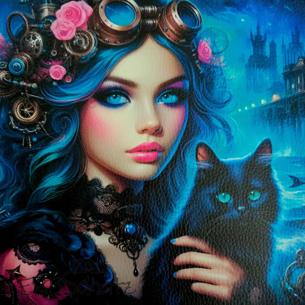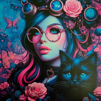 Kunstleder Panele Vibrant Woman & Cats, 25x25 cm